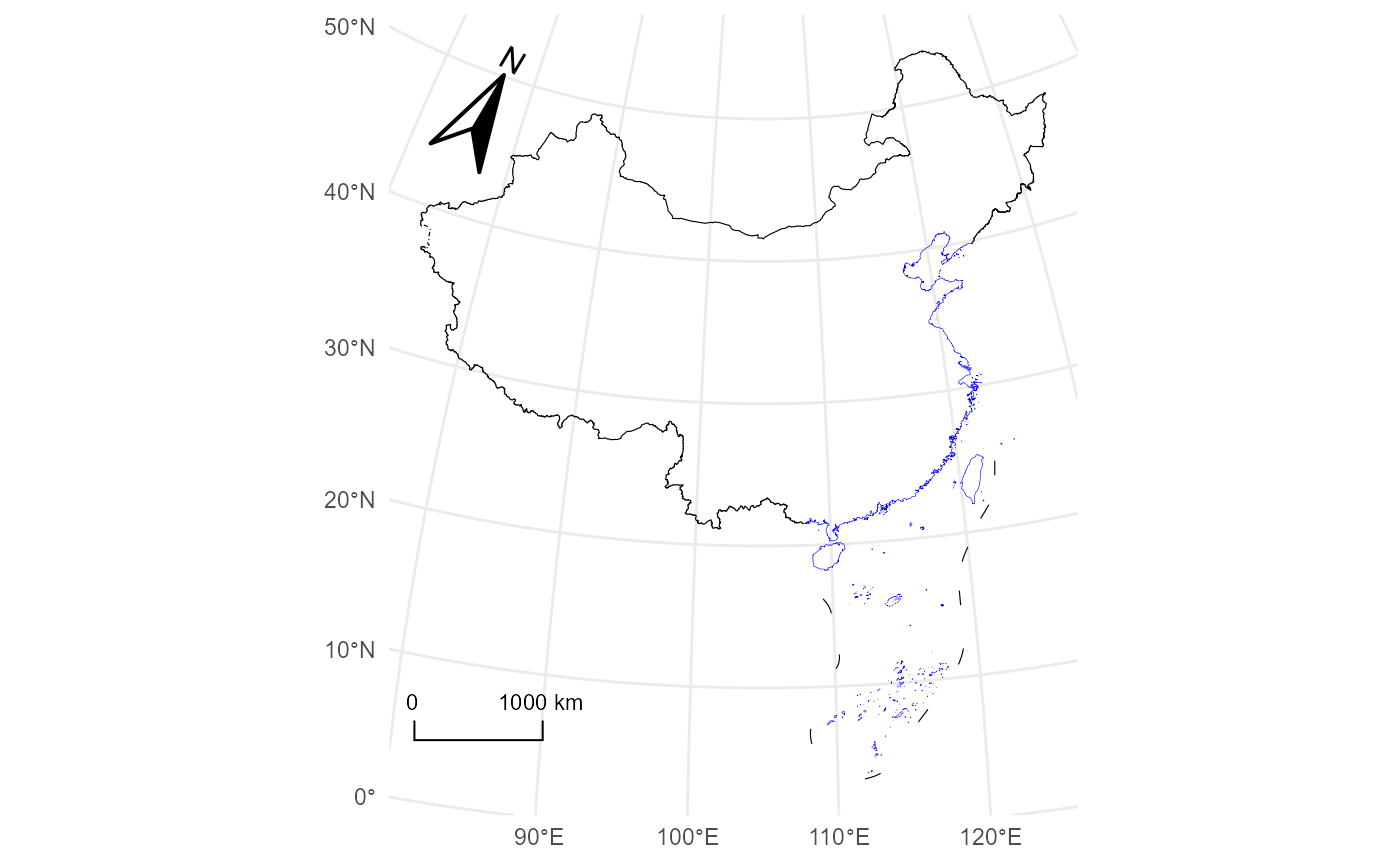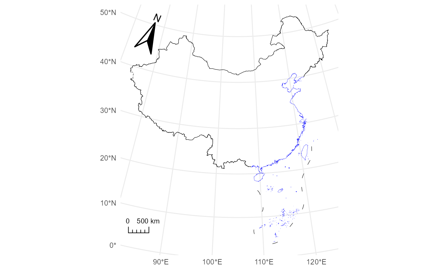 geom_boundary_cn(compass = TRUE, scale = TRUE) +